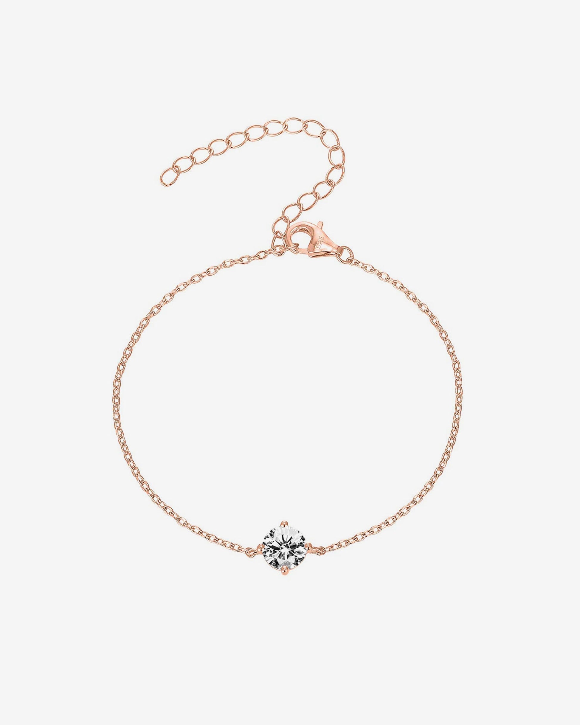 The ultimate combination of modern and classic. With a single prong set winter white glimmering cubic zirconia paired with a strong yet delicate chain, this sterling silver bracelet is the perfect piece to wear on its own or to stack with your other favorites.