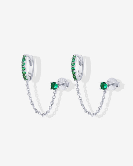 Chained Huggie Hoop with Green CZ Stud