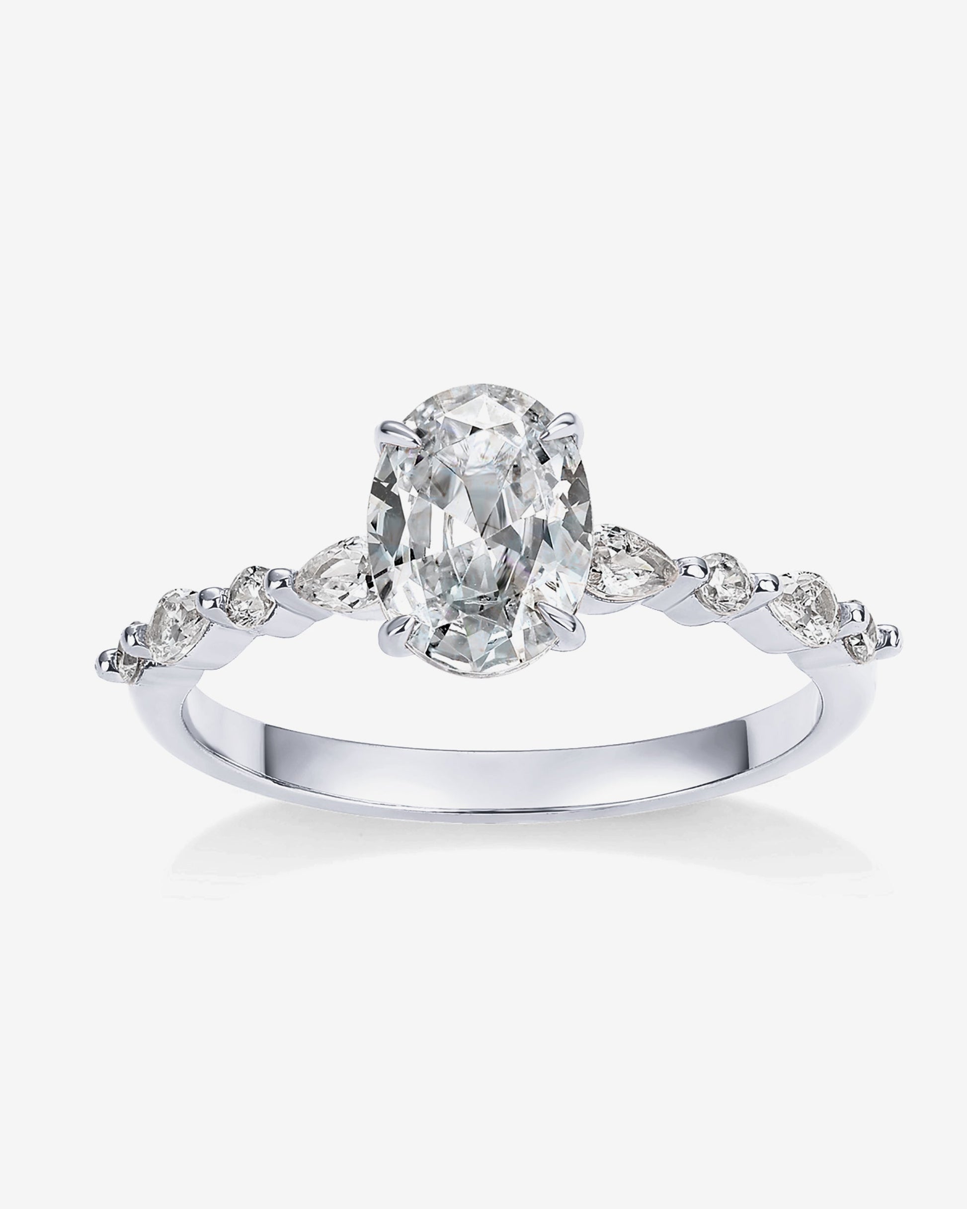 Experience the elegance of our engagement ring, beautifully adorned with a premium 1.25CT oval cubic zirconia stone with a precision cut of 88 facets, surrounded by round stones and marquise stones. This timeless dainty design is a perfect choice for a promise ring or as a stand-in for your original ring.
